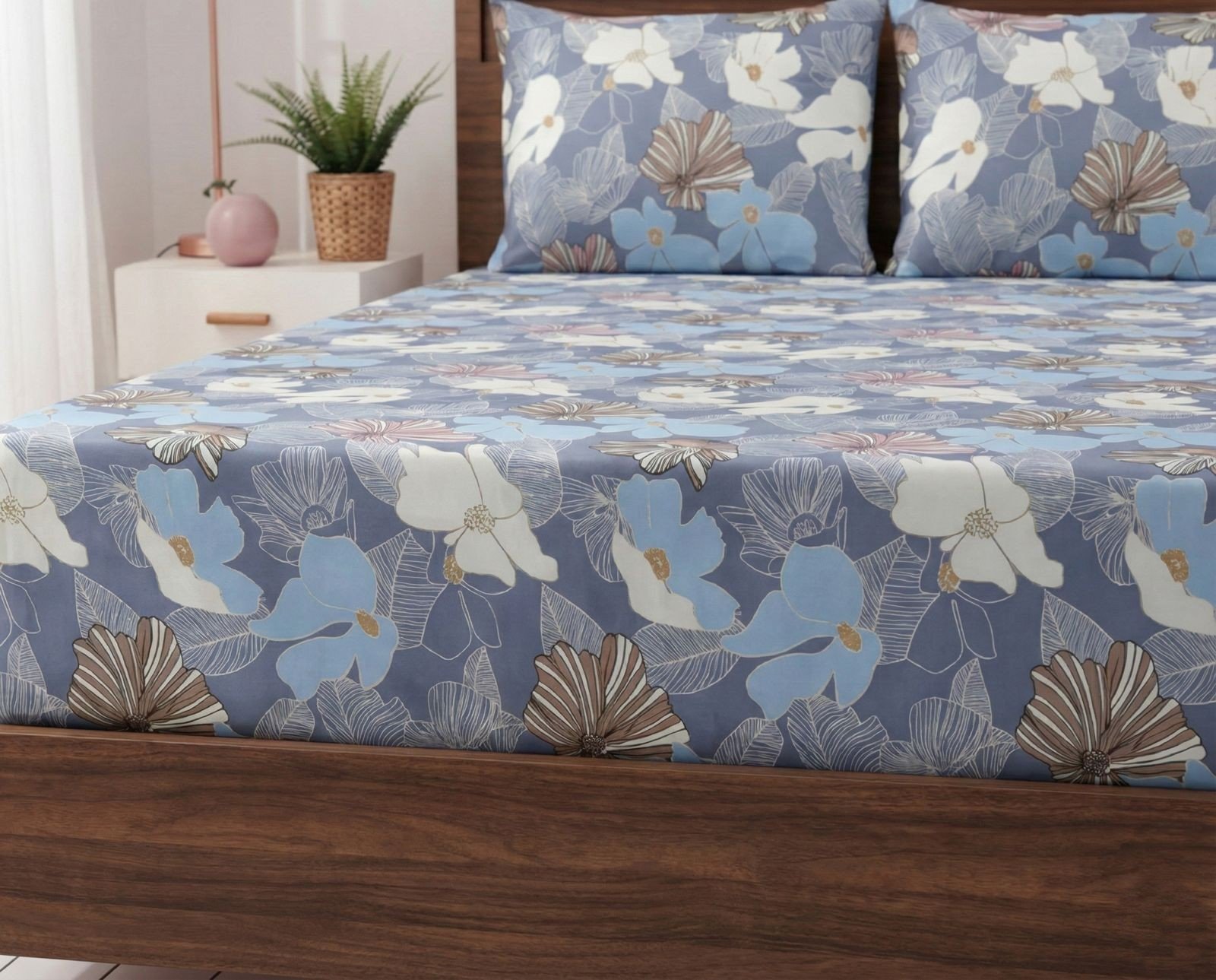 Soft Blue Floral 3-Pc King Fitted Sheet Set – Royal Linen – khatoon-e-jannat.com